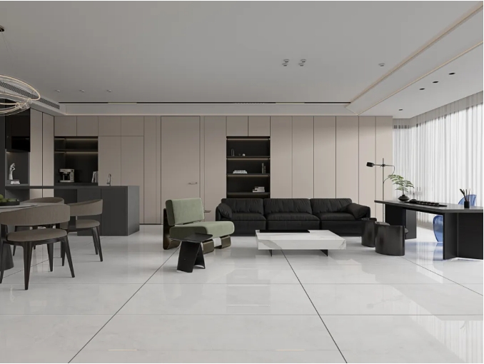 以朦胧浅灰为基调,纹理如薄雾晕染,柔和灰白脉络自然交织,仿佛远山云雾,为空间增添一抹低调而富有诗意的现代美学。
