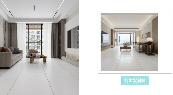 无论是客厅背景墙的一抹大气,卫浴空间中的点睛之笔,还是通铺地面的流畅延伸,简奢复刻釉都能轻松驾驭。它让艺术成为生活的